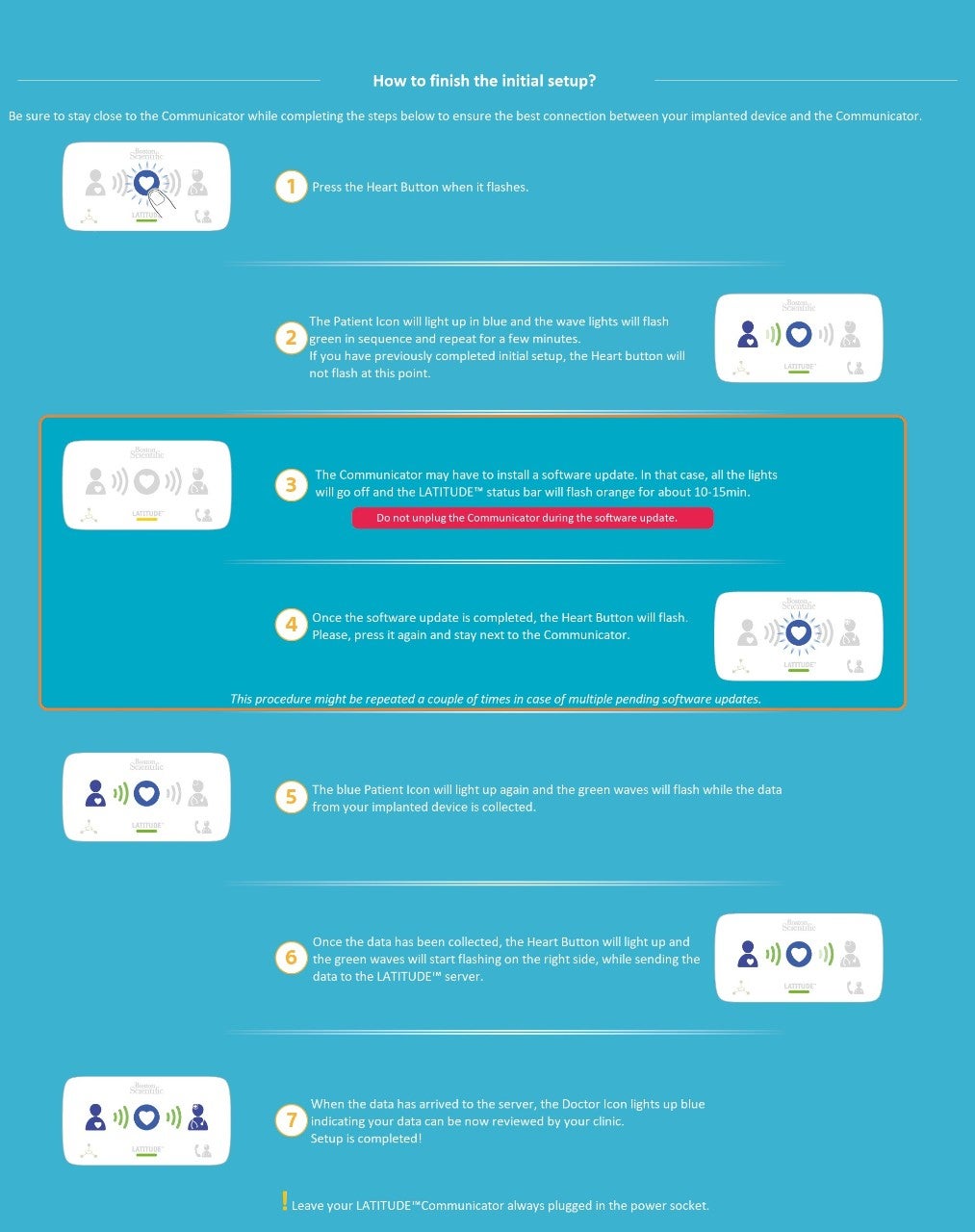 For further information on setting up you LATITUDETM Communicator, please check the LATITUDETM Patient Manual.